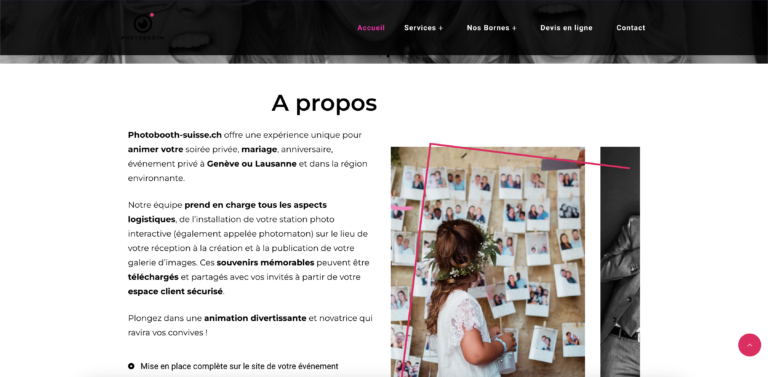 Création du site web pour Photobooth-suisse.ch : Animation photographique interactive pour événements privés